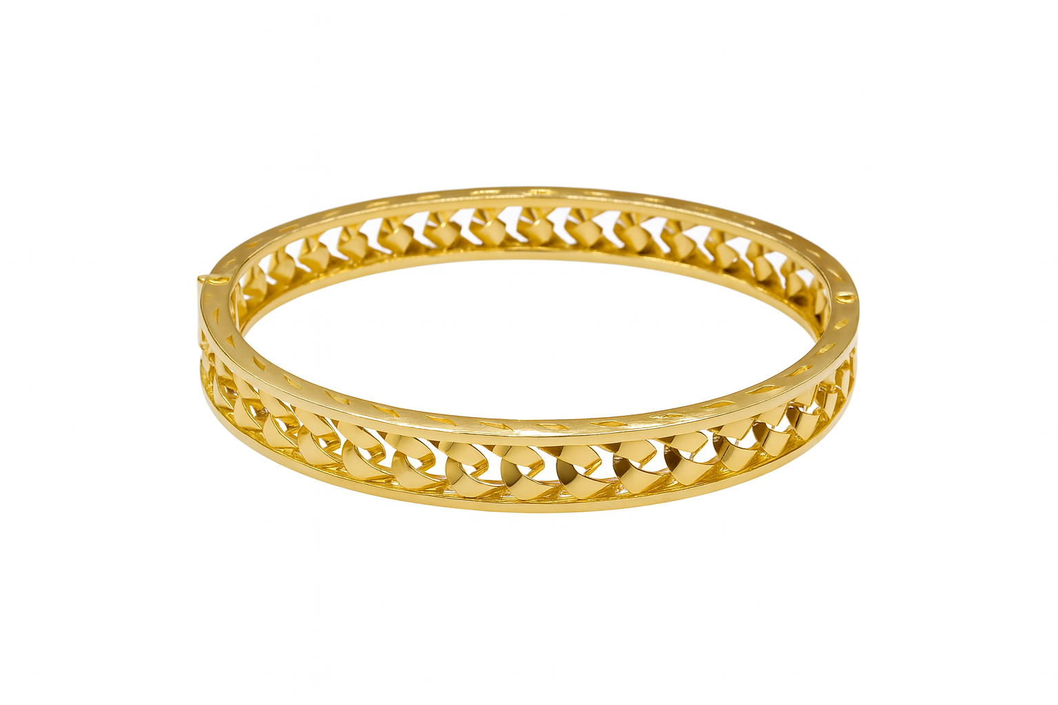 Bransoletka wykonana ze złota próby 585, elegancka i pełna blasku. Model o kunsztownym, ażurowym splocie, który pięknie odbija światło i prezentuje się wyjątkowo na nadgarstku. Sztywna konstrukcja zachowuje idealny kształt, a praktyczne zapięcie szufladkowe zapewnia wygodę i bezpieczeństwo noszenia.