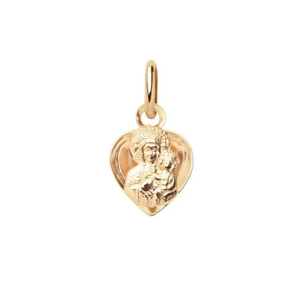 Złoty medalik Matka Boska Częstochowska w sercu, wykonany ze złota próby 333.