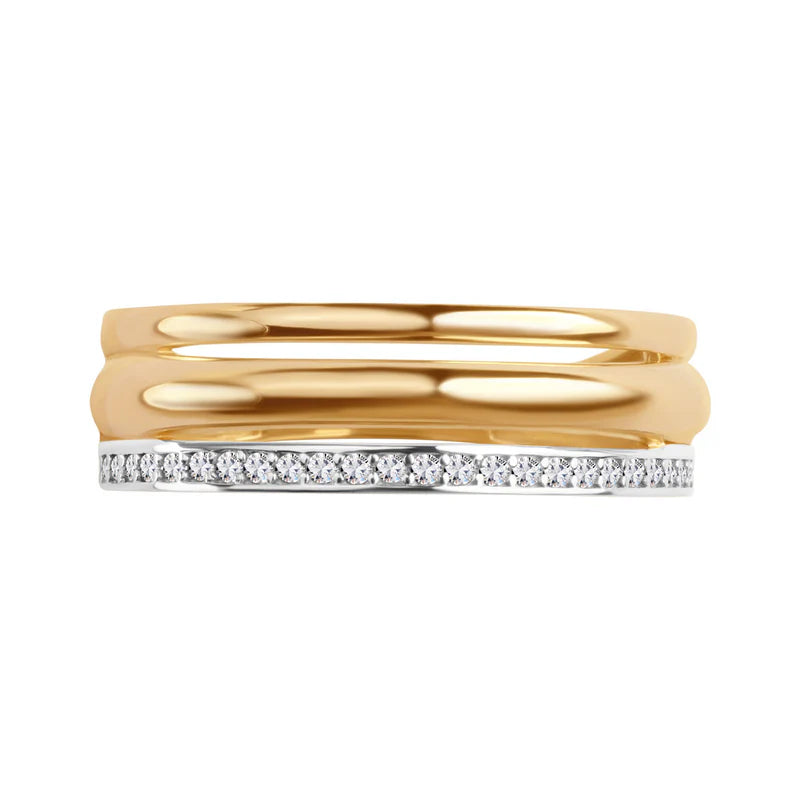 Pierścionek szeroki, ozdobiony drobnymi cyrkoniami, wykonany z najwyższej jakości żółtego złota próby 333.