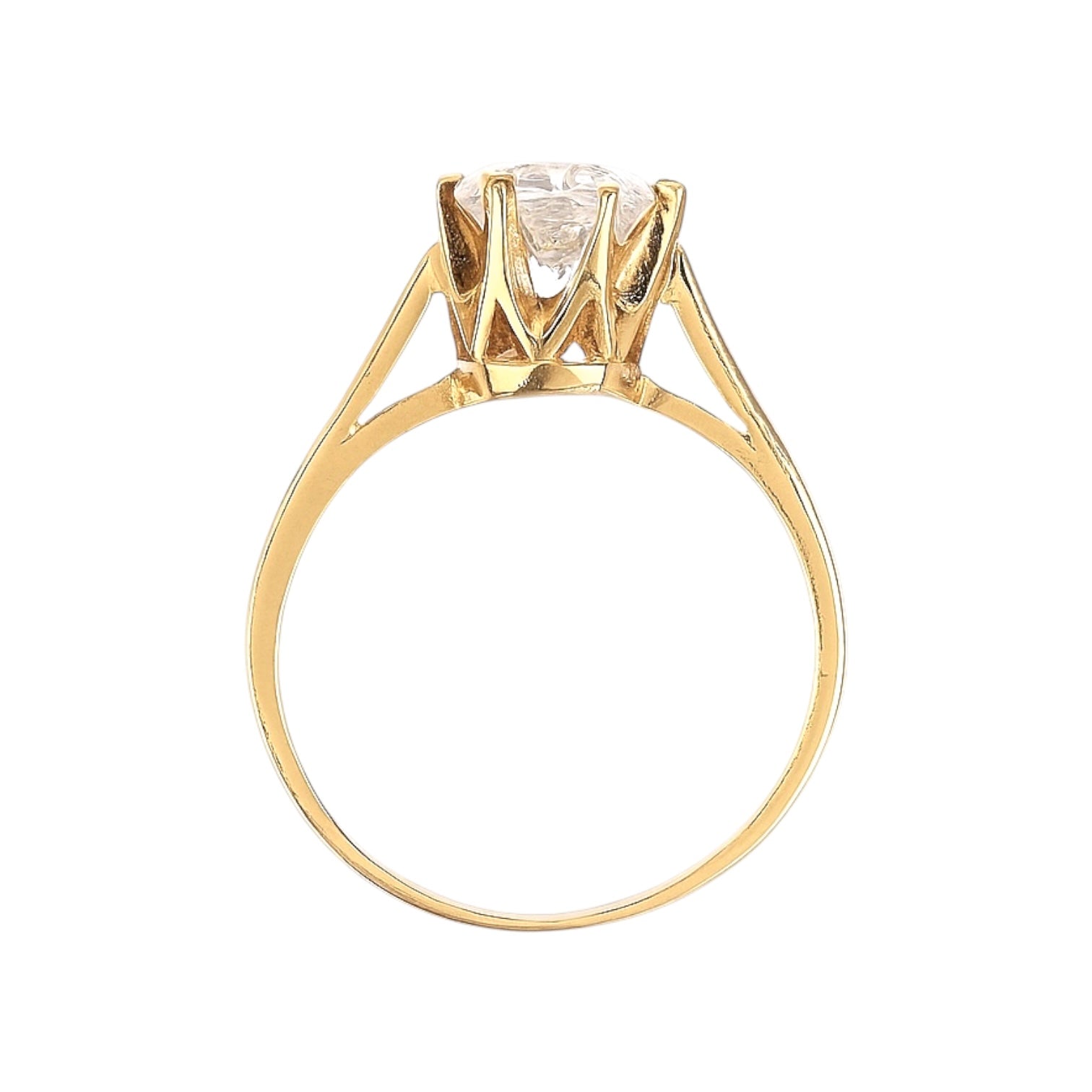 Złoty pierścionek z dużą cyrkonią, wykonany z żółtego złota próby 333.