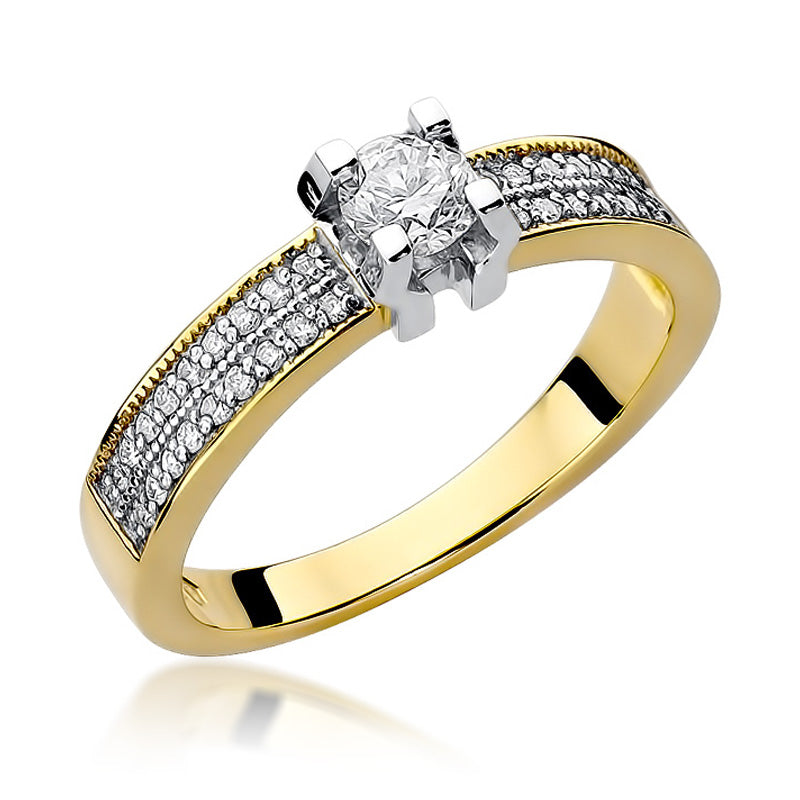 Pierścionek został stworzony ręcznie, wykonany z żółtego złota próby 585 z trzydziestoma sześcioma brylantami o łącznej masie 0,30 ct, czystość i biel Si/H. Waga 3,4-3,8 g. Możliwe wykonanie pierścionka do rozmiaru 30. Autentyczność brylantów potwierdzona Certyfikatem.